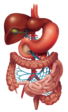 Food enters the mouth and passes to the anus through the hollow organs of the GI tract. The liver, pancreas, and gallbladder are the solid organs of the digestive system. The digestive system helps the body digest food. Bacteria in the GI tract, also called gut flora or microbiome, help with digestion.